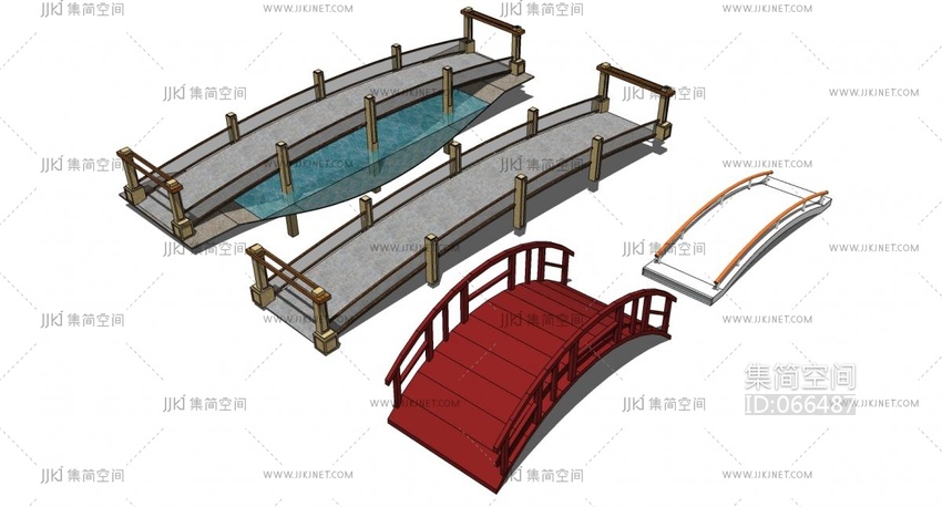 11中式园林景观桥小木桥木拱桥 su草图模型下载 [模型ID:66487]