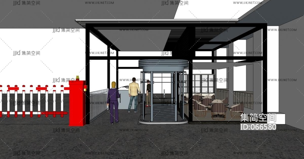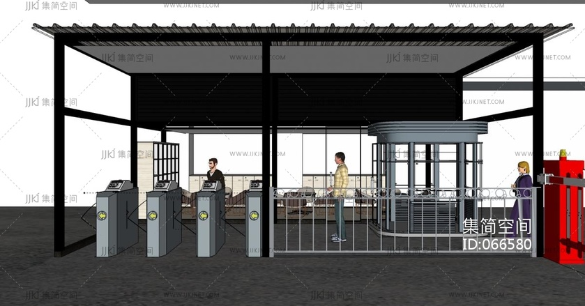 31安检入口道闸闸机伸缩门岗亭 su草图模型下载 [模型ID:66580]