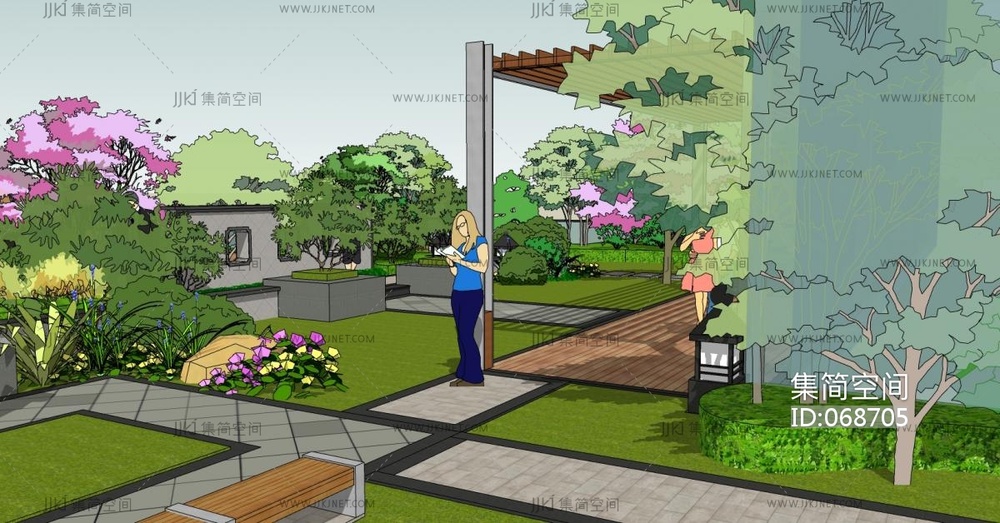 43空中花园屋顶花园庭院景观植物 su草图模型下载 [模型ID:68705]