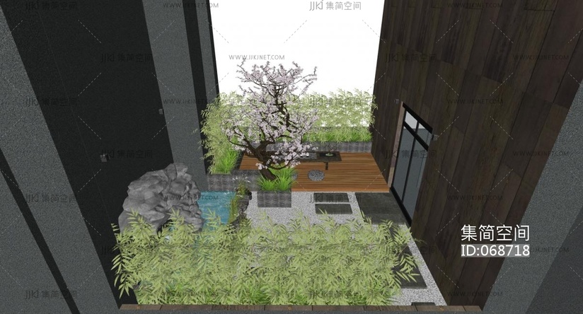 15中式屋顶庭院景观庭院景观阳台景观植物 su草图模型下载 [模型ID:68718]