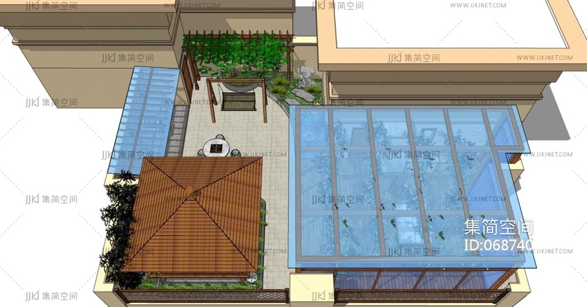 新中式屋顶花园 (1)su草图模型下载