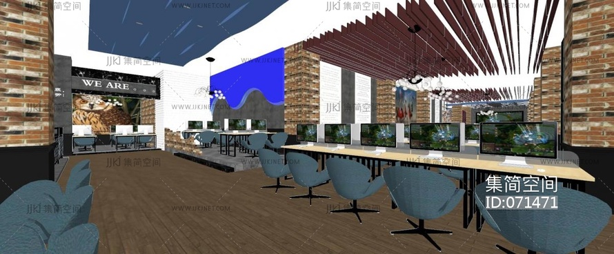 后现代电竞网吧su草图模型下载
