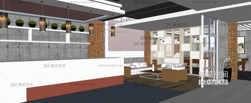 现代科幻电竞网咖游戏接待前台,休闲区su草图模型下载