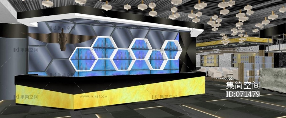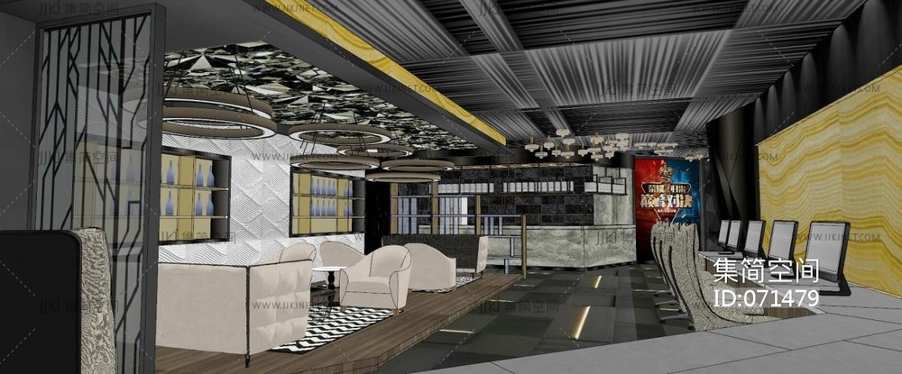 现代科幻电竞网咖游戏接待前台,休闲区su草图模型下载