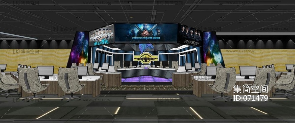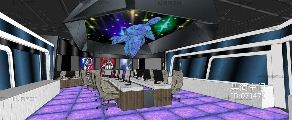 现代科幻电竞网咖,网吧游戏大厅su草图模型下载