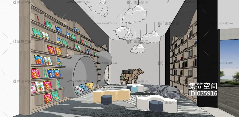 62现代儿童活动游乐区,儿童图书柜,儿童异形沙发,北极熊书柜置物架,云朵模型,摆件,玩具 su草图模型下载 [模型ID:75916]