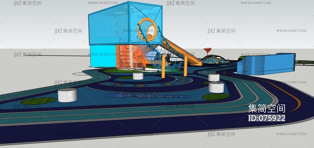 64现代儿童游乐园,滑梯,障碍设施 su草图模型下载 [模型ID:75922]