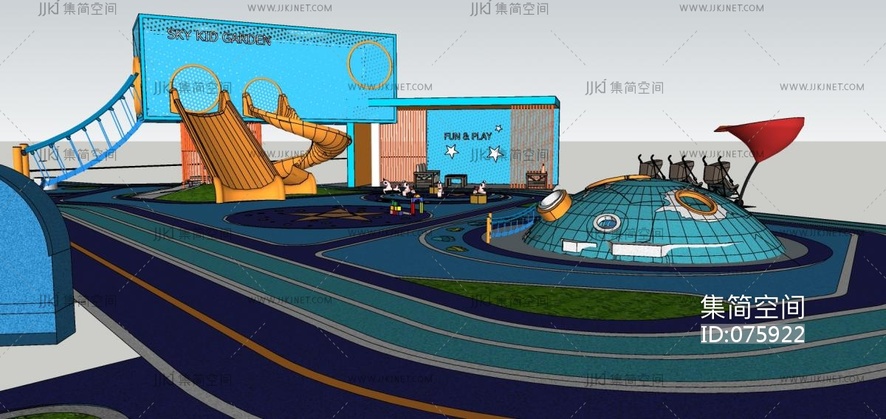 177幼儿园户外活动乐园儿童游乐设施卡通可爱设计方案su草图模型下载