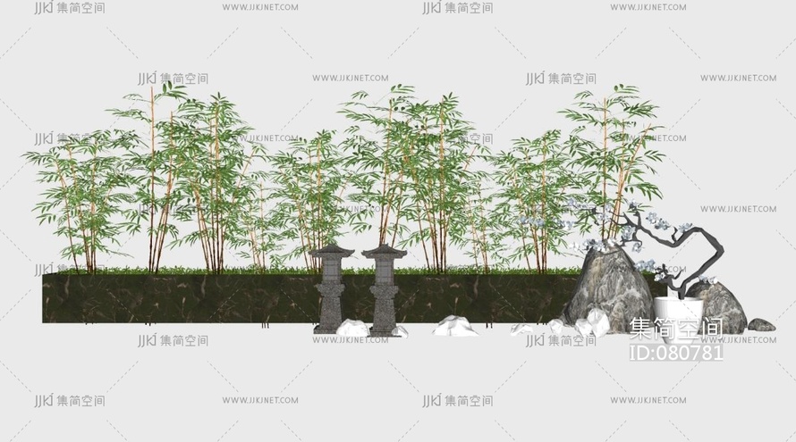 新中式竹子景观小品,花槽, su草图模型下载 [模型ID:80781]