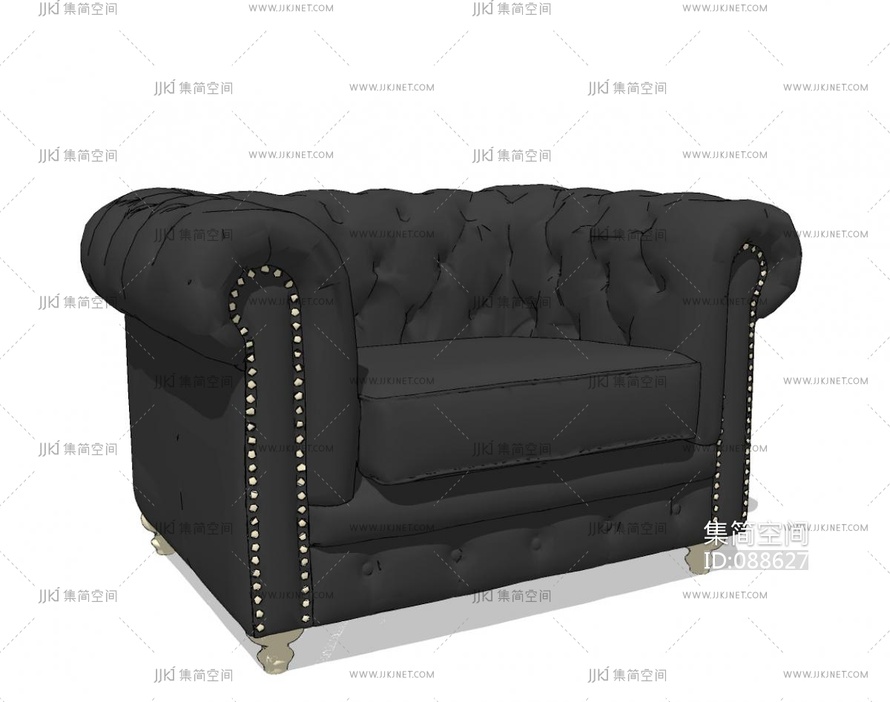 欧式皮革软包单人办公沙发-0 su草图模型下载 [模型ID:88627]