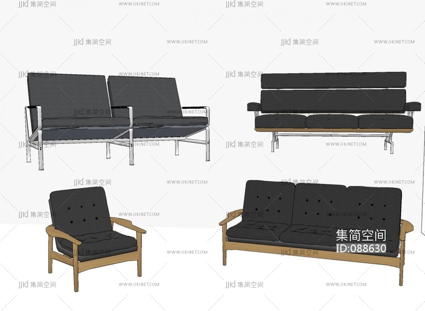 现代单人双人办公沙发公共座椅-0 su草图模型下载 [模型ID:88630]