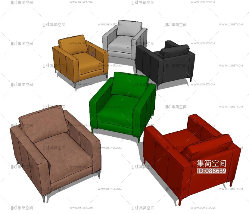 现代单人办公皮革沙发-0 su草图模型下载 [模型ID:88639]