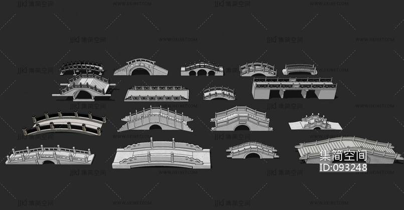 中式玉石栏杆,石拱桥平桥 su草图模型下载 [模型ID:93248]
