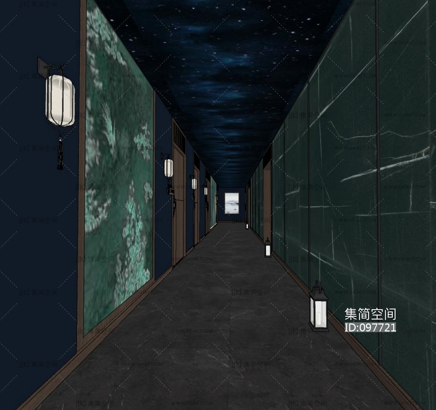 新中式ktv过道,走廊 su草图模型下载 [模型ID:97721]