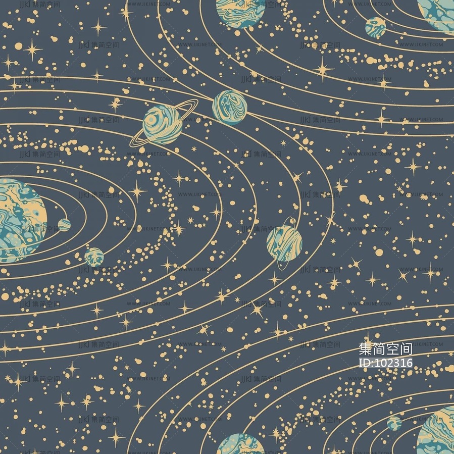 儿童星球宇宙壁纸壁布装饰画材质贴图下载
