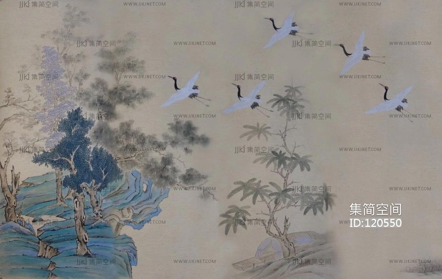 新中式仙鹤壁纸壁布背景画 (22) 材质贴图下载