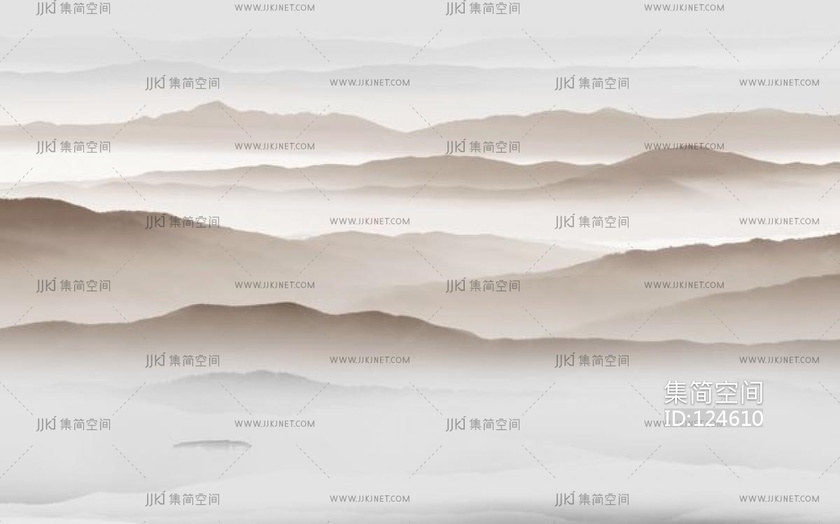 新中式山脉背景壁纸壁布壁画屏风画 (3) 材质贴图下载