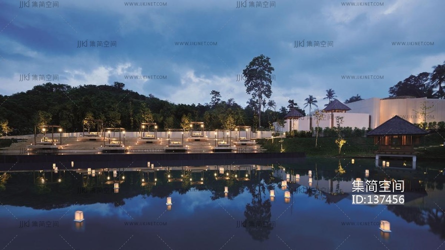 夜景黄昏别墅度假村窗口环境贴图 (2)材质贴图下载