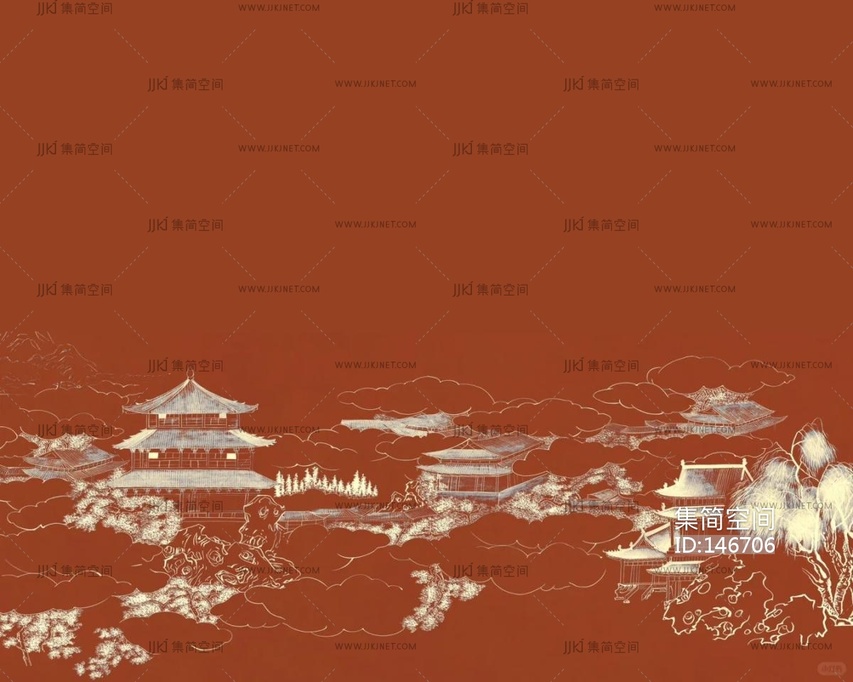 新中式壁纸,背景壁纸壁画建筑线条画贴图 (2) 材质贴图下载 [贴图ID:146706]