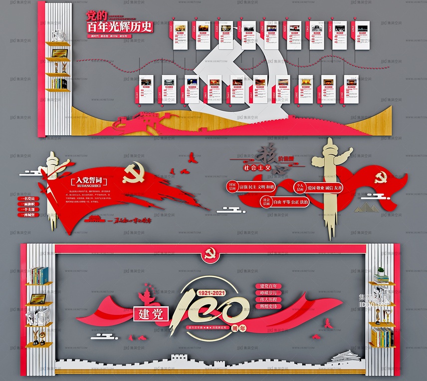 现代党建文化墙 3d模型下载 [模型ID:101699]