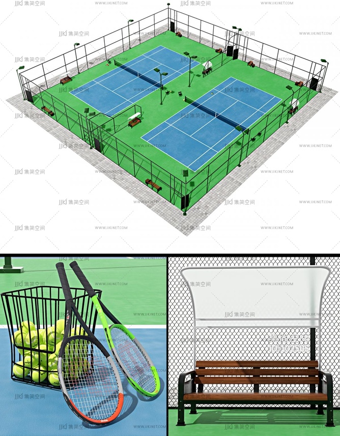 现代室外网球场 3d模型下载 [模型ID:102505]