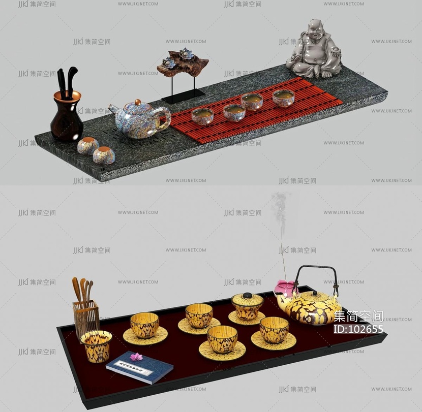 金油滴,幻彩建盏茶具茶盘组合 3d模型下载 [模型ID:102655]