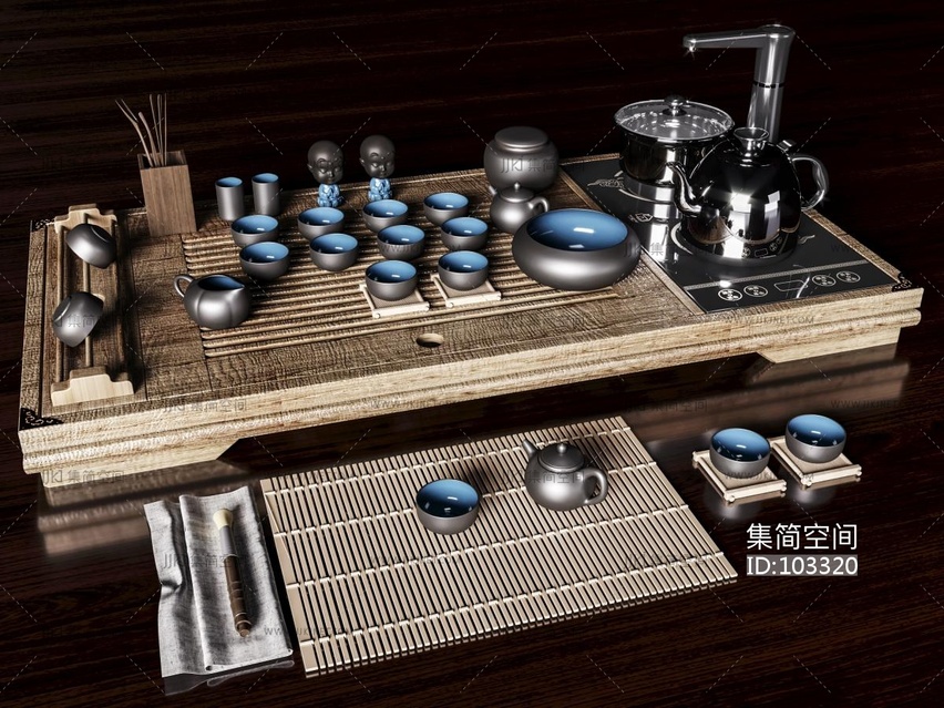 中国功夫茶仪式套装茶具茶海3d模型下载