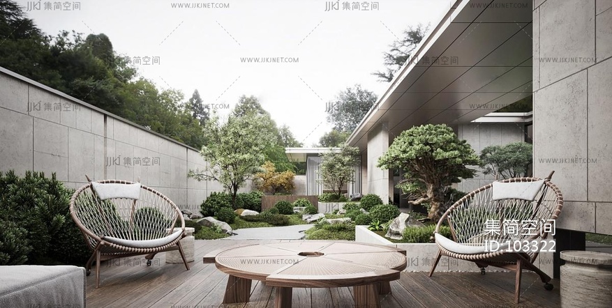 24新中式户外庭院景观 3d模型下载 [模型ID:103322]