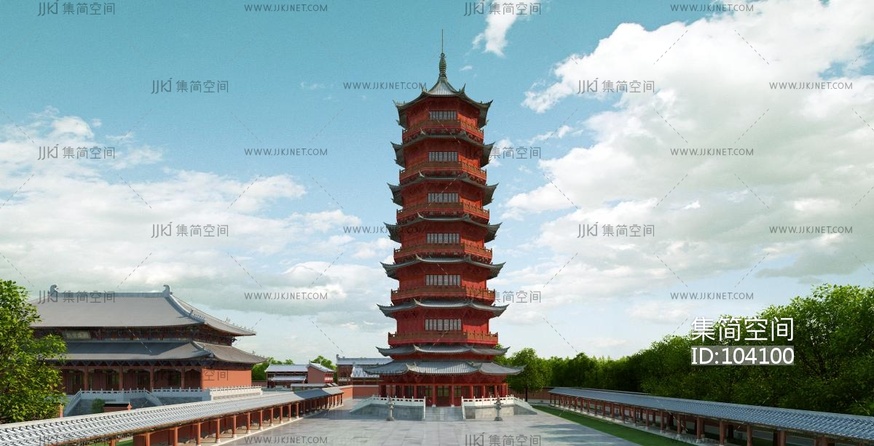 中式佛塔,寺庙 3d模型下载 [模型ID:104100]