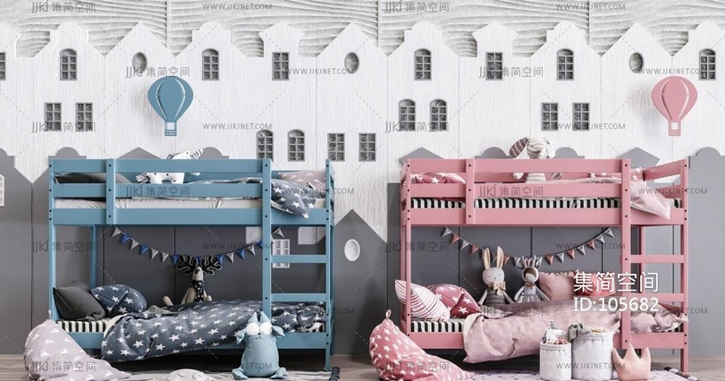 现代儿童床组合 3d模型下载 [模型ID:105682]
