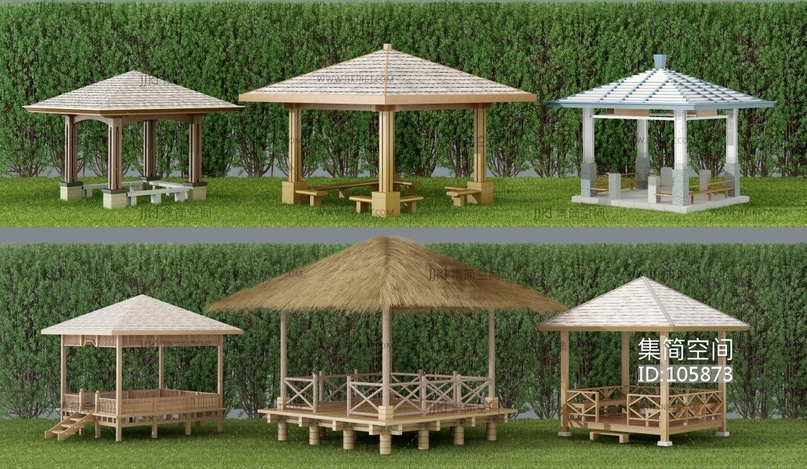 新中式欧式茅草亭子,户外凉亭 3d模型下载 [模型ID:105873]