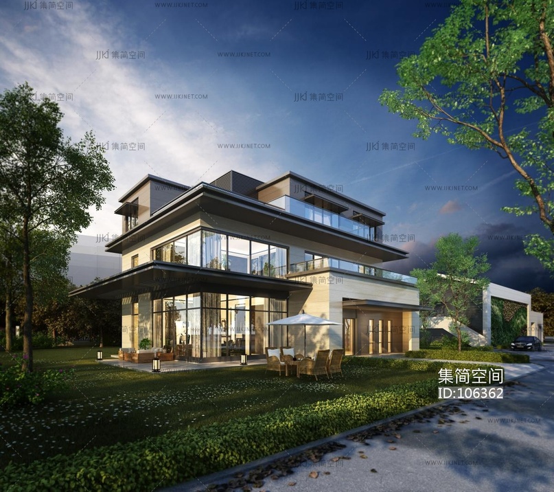 现代独栋别墅,户外建筑外观 3d模型下载 [模型ID:106362]