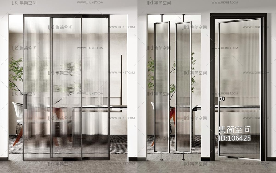 现代工业风长虹玻璃门,推拉门,隔断门 3d模型下载 [模型ID:106425]