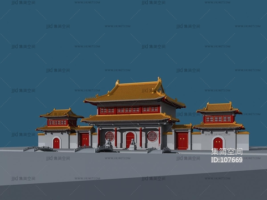 02中式古建,寺庙大门 3d模型下载 [模型ID:107669]