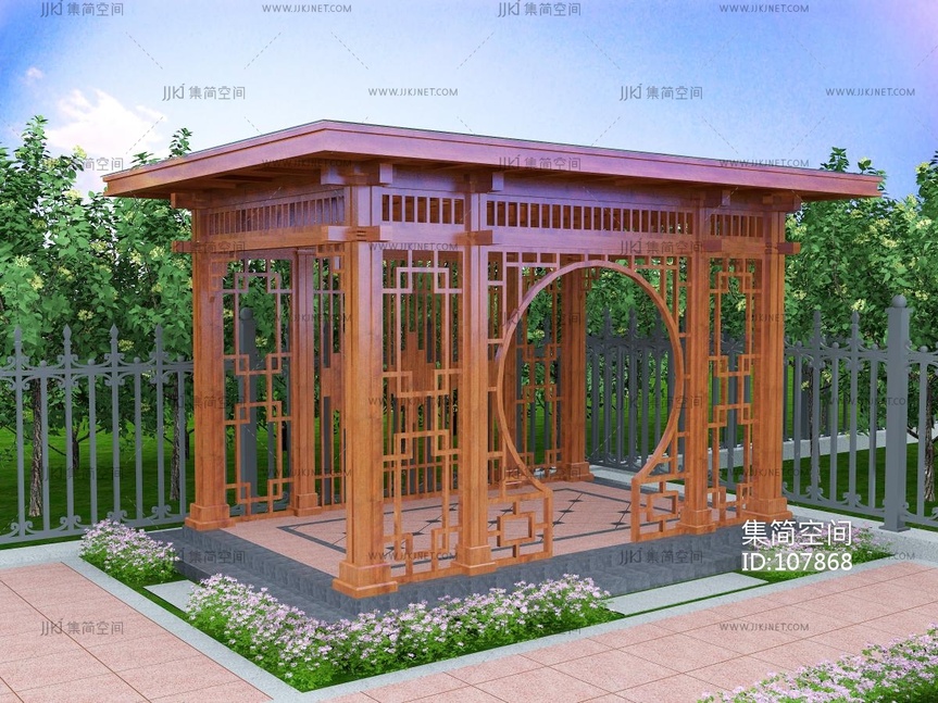 新中式实木凉亭 3d模型下载 [模型ID:107868]