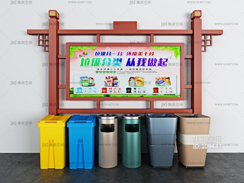 现代垃圾站,垃圾桶 3d模型下载 [模型ID:109437]