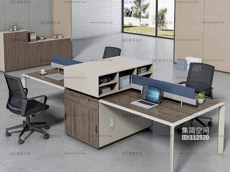 现代办公桌椅,员工工位3d模型下载