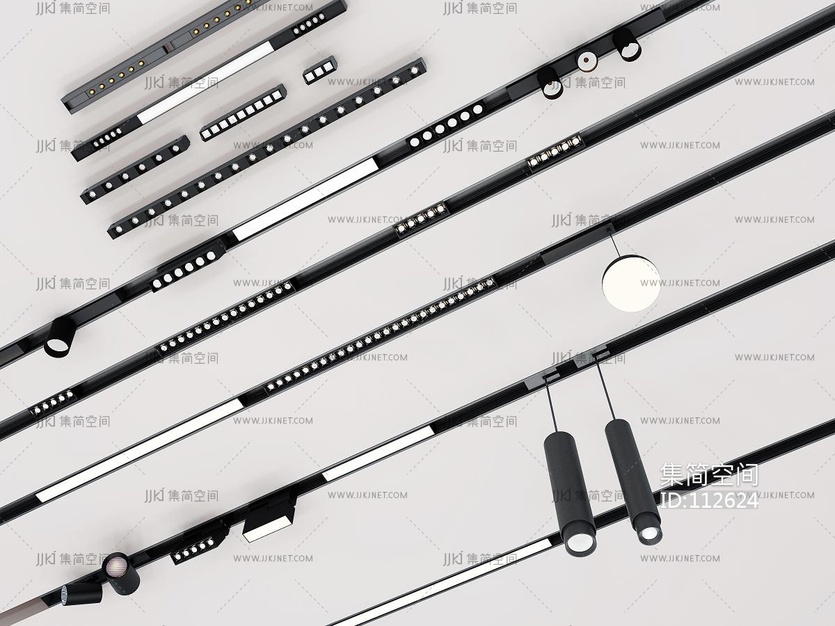 现代极简线型灯磁吸轨道射灯灯组合 3d模型下载 [模型ID:112624]