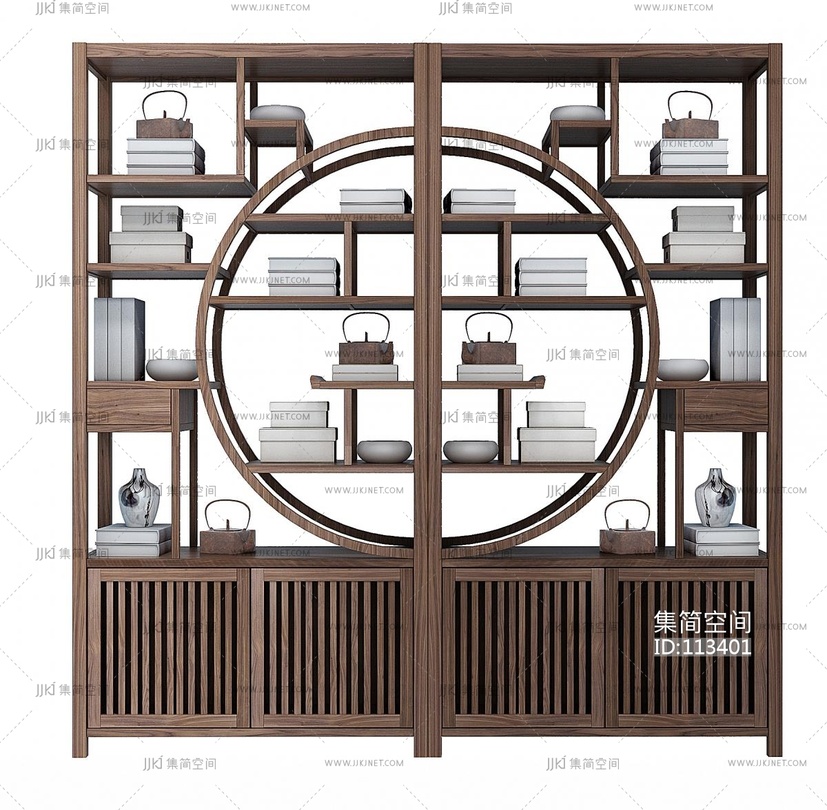 -新中式书柜3d模型下载