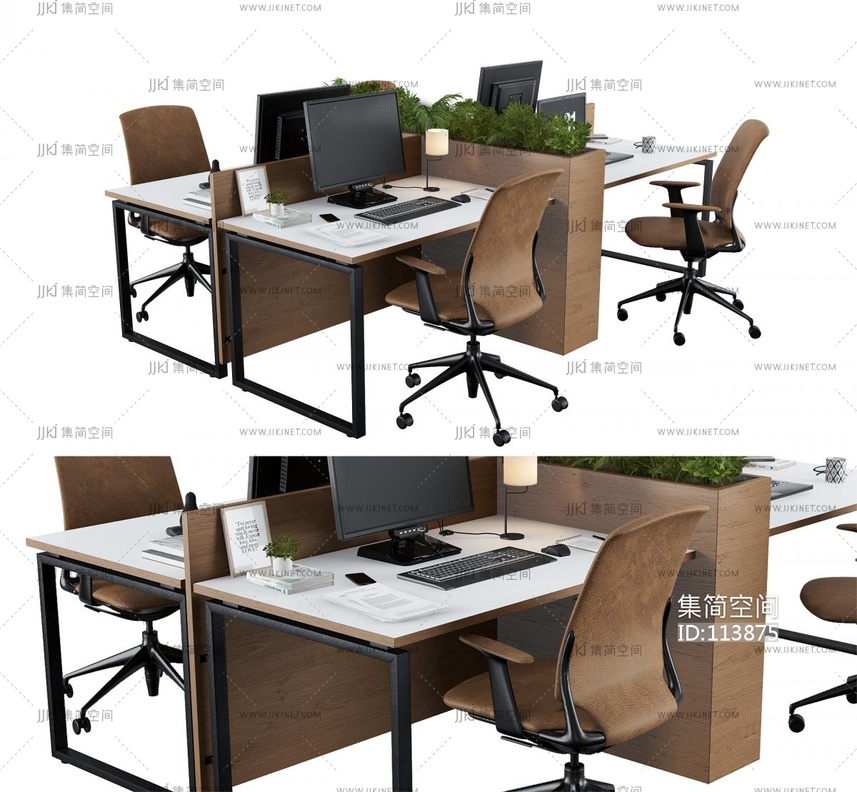 现代办公桌椅, 工位组合_ 3d模型下载 [模型ID:113875]