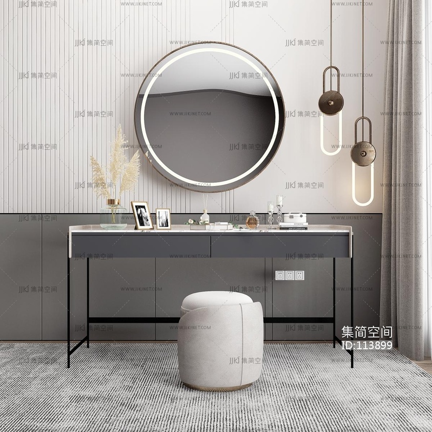 现代梳妆台 圆墩 吊灯 花瓶 日用品 (1) 3d模型下载 [模型ID:113899]
