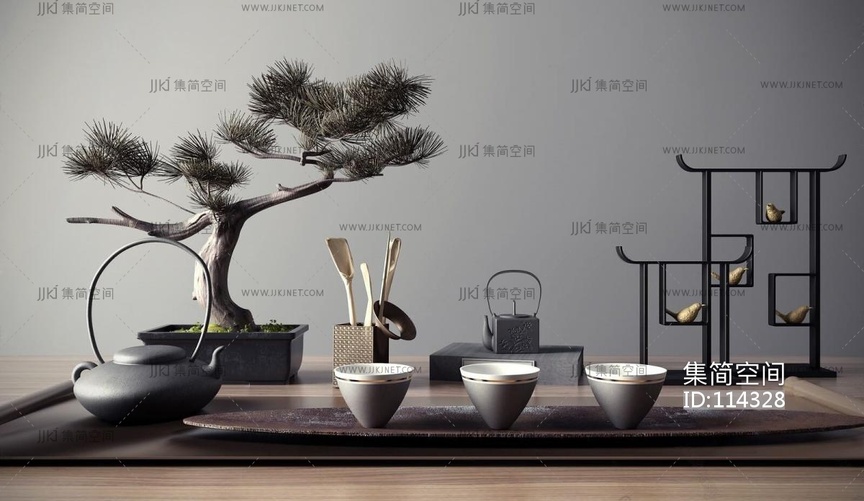新中式茶具摆件组合 3d模型下载 [模型ID:114328]