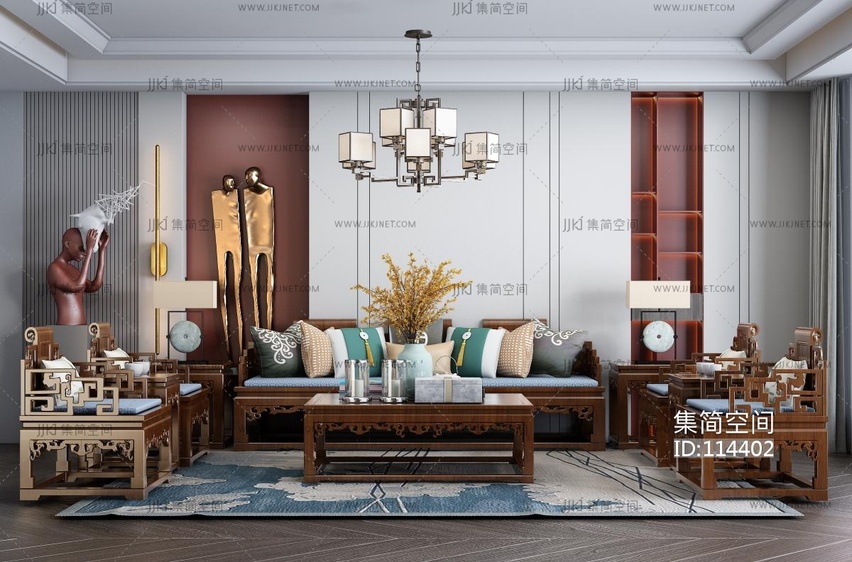 中式古典实木沙发茶几组合 3d模型下载 [模型ID:114402]