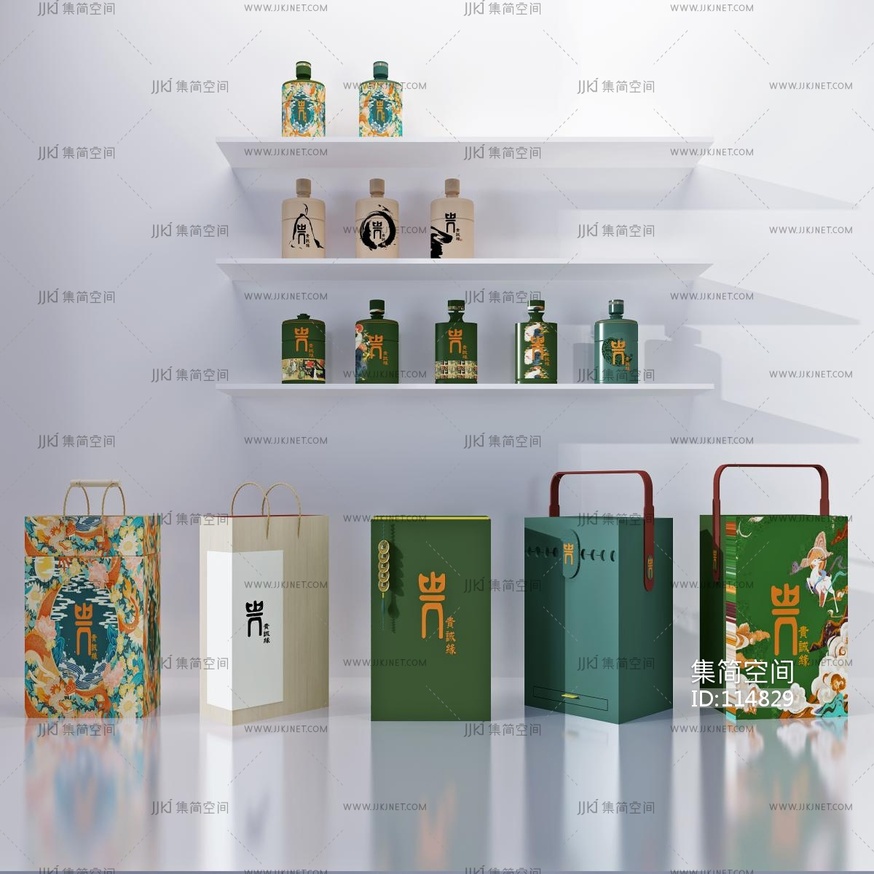 现代包装盒 礼品袋 3d模型下载 [模型ID:114829]