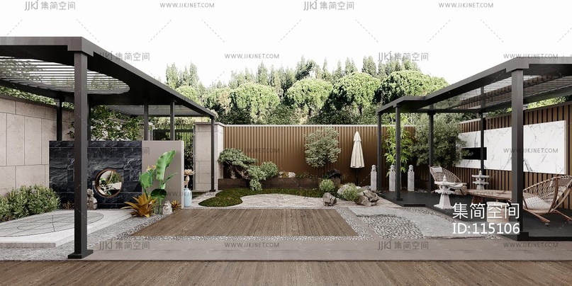 现代庭院景观花园凉亭 3d模型下载 [模型ID:115106]