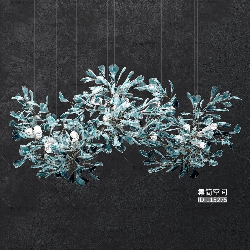 现代树叶水晶吊灯 3d模型下载 [模型ID:115275]