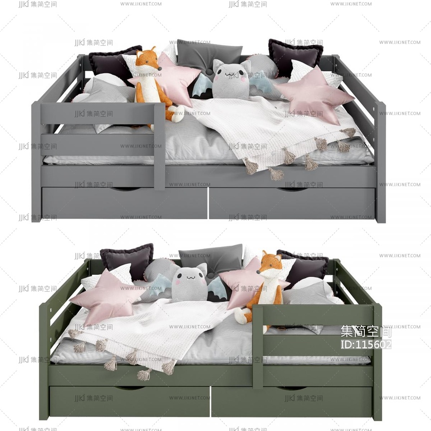 现代儿童床 玩偶 玩具 3d模型下载 [模型ID:115602]
