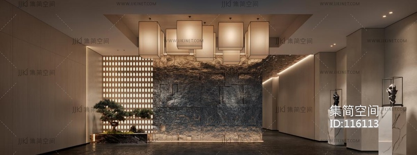 新中式足浴会所大厅大堂 3d模型下载 [模型ID:116113]