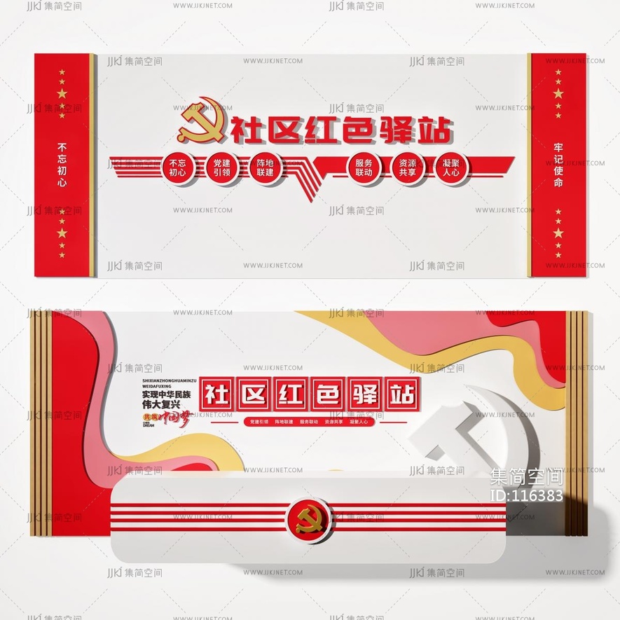 现代党建宣传文化墙宣传栏 3d模型下载 [模型ID:116383]