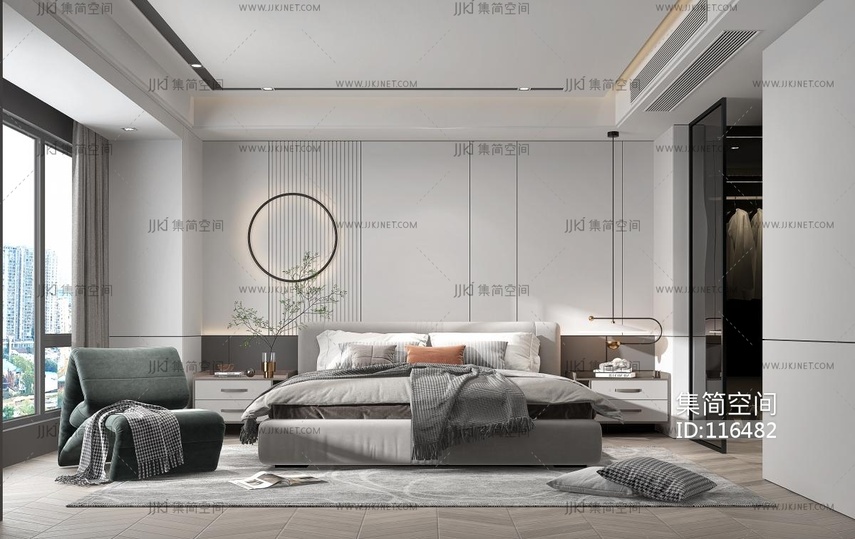 6法式中古家居卧室_主卧_飘窗卧室_高级灰卧室3D模型cr3d模型下载